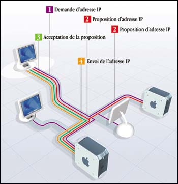 Quatre étapes, cela peut sembler bien compliqué pour une simple communication entre un client et un serveur, mais c'est un problème lié à la nature même de TCP/IP. On sait que deux machines ne peuvent communiquer via TCP/IP que si elles sont sur le même réseau, c'est-à-dire qu'elles possèdent des adresses IP dont la partie réseau est identique, et les parties hôtes différentes. Si l'une des deux machines est dépourvue d'adresse IP, elle ne peut qu'envoyer et recevoir des diffusions, employées pendant toute la phase d'initialisation d'un client DHCP. Ce n'est qu'à l'issue de cette phase que le nouveau client DHCP peut se servir de son adresse IP toute neuve pour des communications point à point.