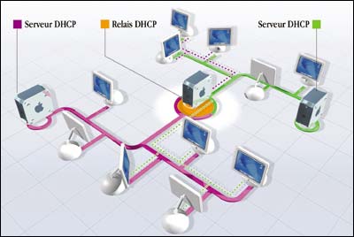 Encore dépourvu d'adresse IP, le nouveau client DHCP doit en demander une par diffusion. Sa requête ne peut aboutir que sur un réseau local, dont un envoi en broadcast ne peut franchir les limites. Seule solution pour étendre les possibilités de DHCP à des sous-réseaux : utiliser des serveurs appropriés, appelés relais DHCP, qui sont en mesure de faire suivre une diffusion depuis et vers des sous-réseaux. Il peut donc faire suivre les requêtes des clients et les réponses du serveur d'un sous-réseau à l'autre.